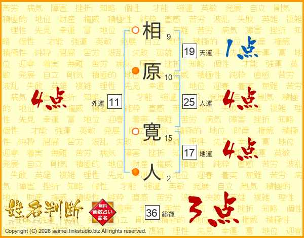 相原寛人さんの総運は36画の3点!