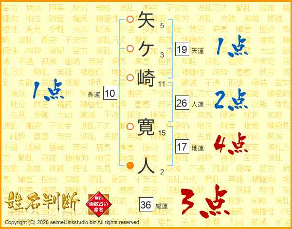 矢ケ崎寛人さんの人運は26画の2点!