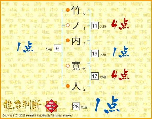 竹ノ内寛人さんの天運は11画の4点!