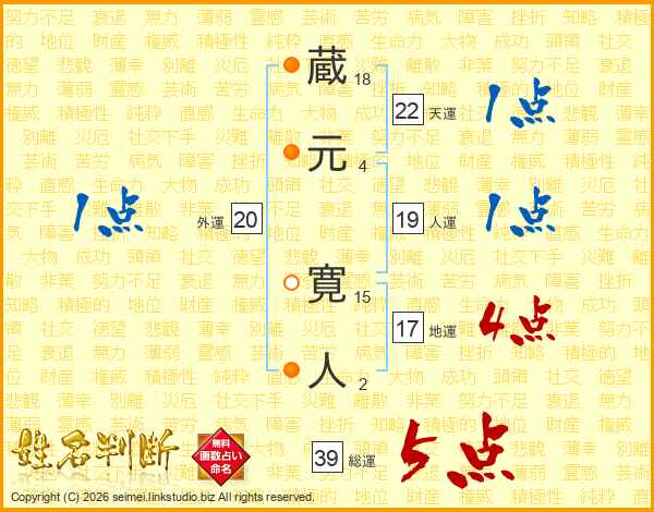 蔵元寛人さんの総運は39画の5点!