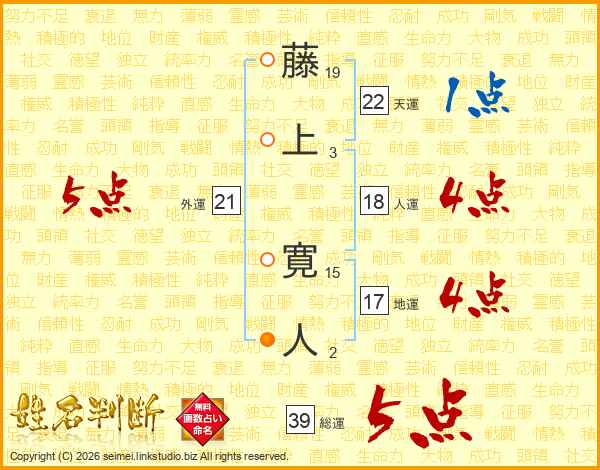 藤上寛人さんの総運は39画の5点!