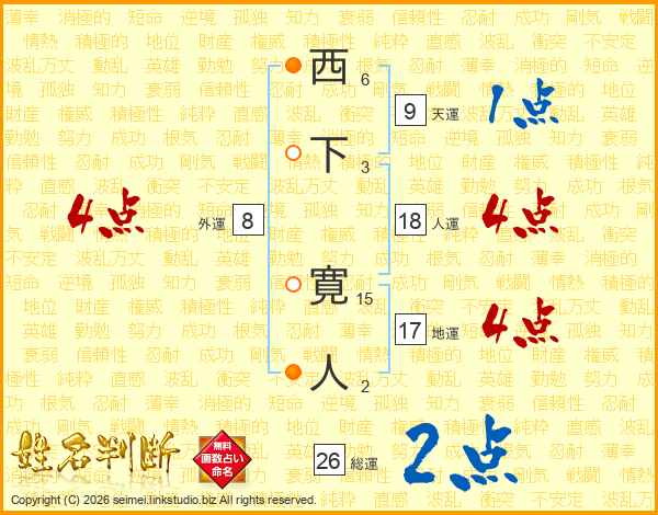 西下寛人さんの総運は26画の2点!