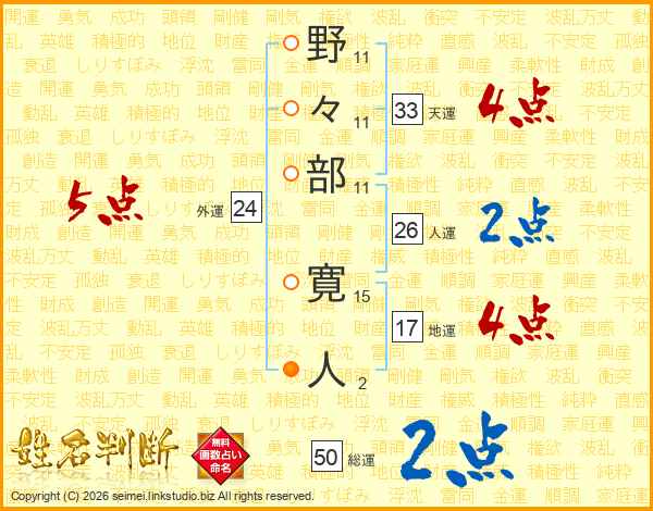 野々部寛人さんの人運は26画の2点!