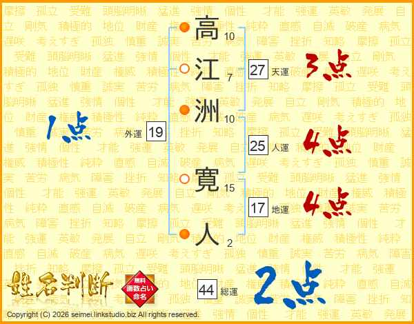 高(10画)江(7画)洲(10画) 寛(15画)人(2画)