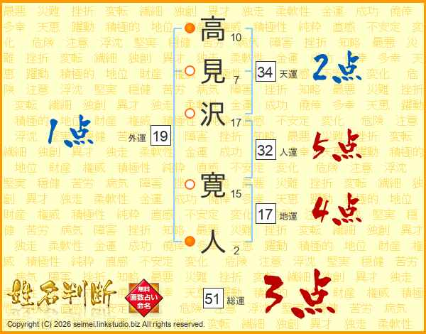高見沢寛人さんの総運は51画の3点!