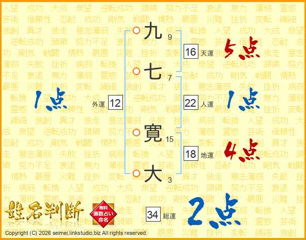 九七寛大さんの総運は34画の2点!