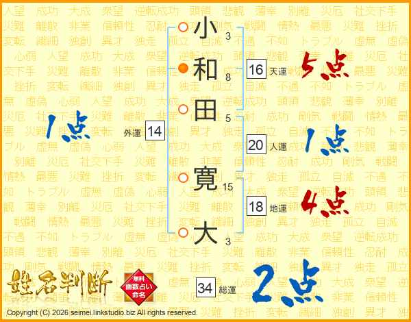 小和田寛大さんの総運は34画の2点!