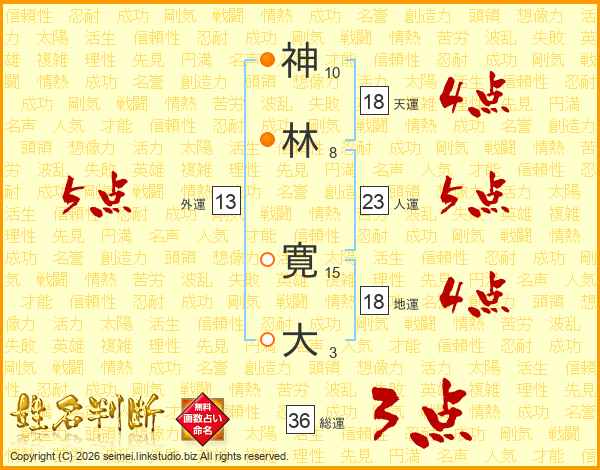 神(10画)林(8画) 寛(15画)大(3画)