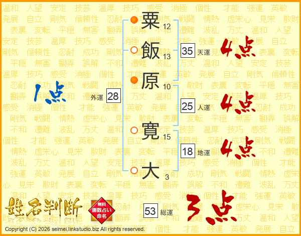 粟飯原寛大さんの人運は25画の4点!