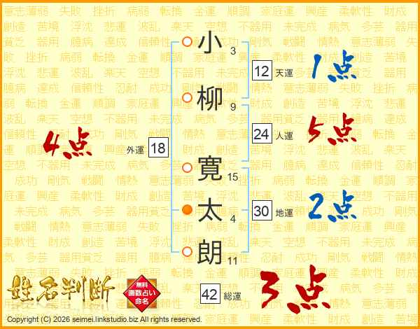 小柳寛太朗さんの総運は42画の3点!