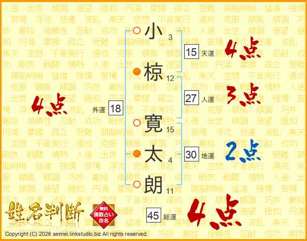 小椋寛太朗さんの総運は45画の4点!