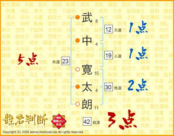 武中寛太朗さんの地運は30画の2点!