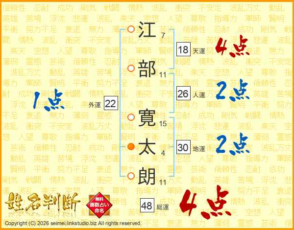 江部寛太朗さんの総運は48画の4点!