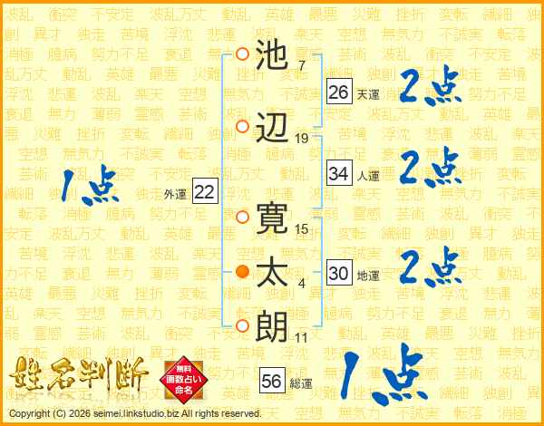 池辺寛太朗さんの天運は26画の2点!