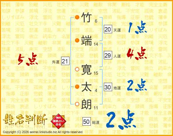 竹端寛太朗さんの総運は50画の2点!