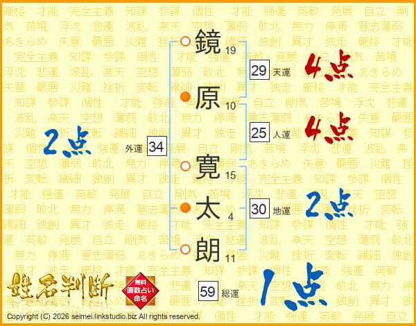 鏡原寛太朗さんの天運は29画の4点!