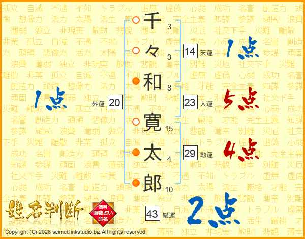 千々和寛太郎さんの総運は43画の2点!