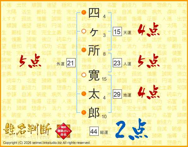 四ヶ所寛太郎さんの総運は44画の2点!
