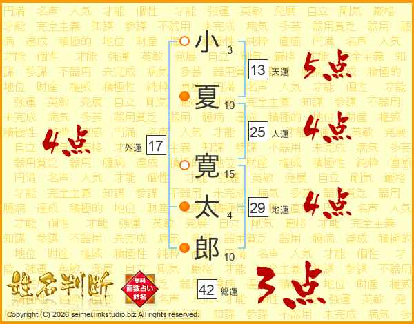 小夏寛太郎さんの総運は42画の3点!
