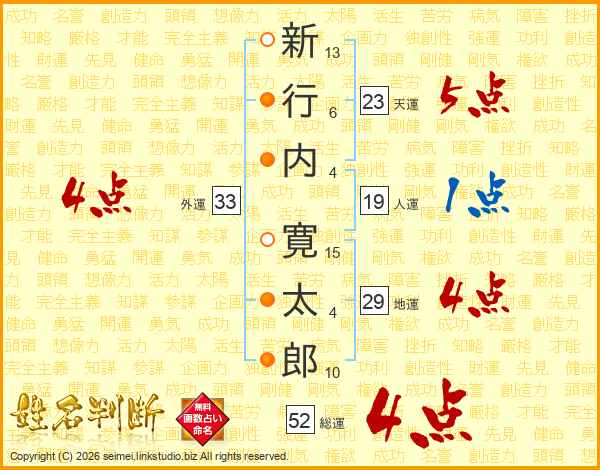 新行内寛太郎さんの総運は52画の4点!