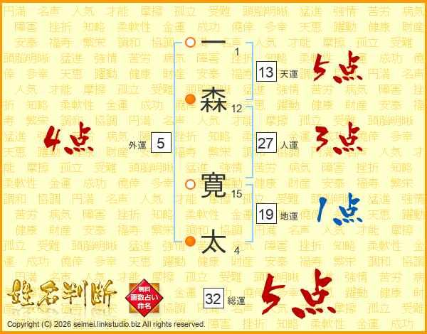 一森寛太さんの総運は32画の5点!