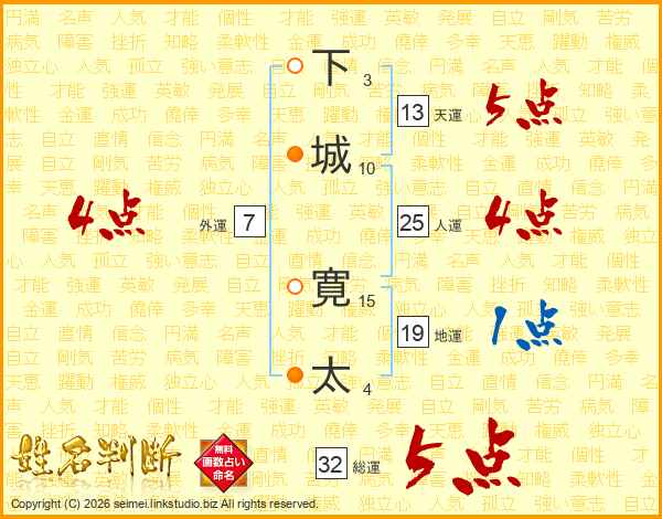 下城寛太さんの総運は32画の5点!