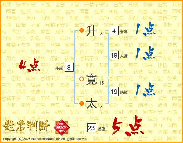 升寛太さんの総運は23画の5点!
