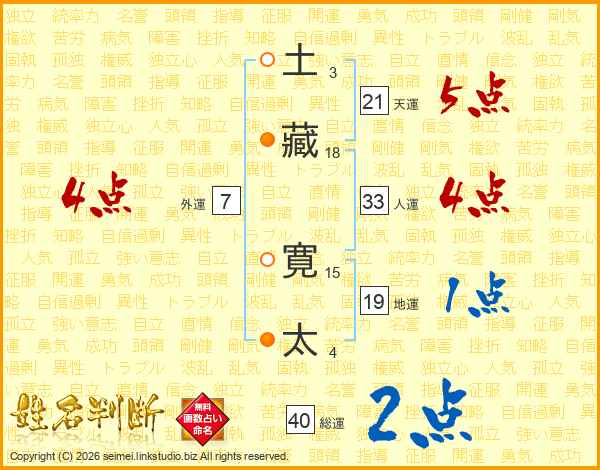 土藏寛太さんの総運は40画の2点!