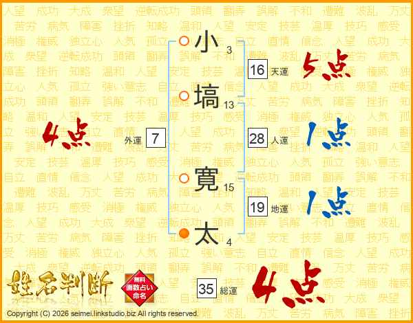 小塙寛太さんの総運は35画の4点!