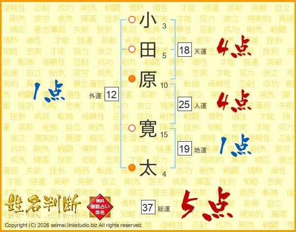 小田原寛太さんの総運は37画の5点!