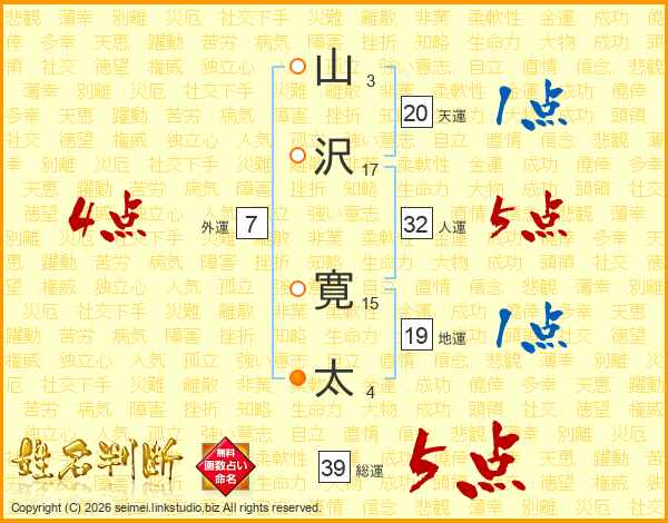 山沢寛太さんの総運は39画の5点!