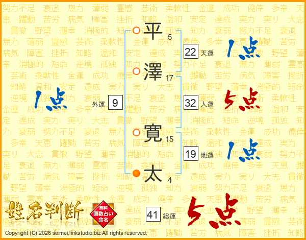 平澤寛太さんの総運は41画の5点!