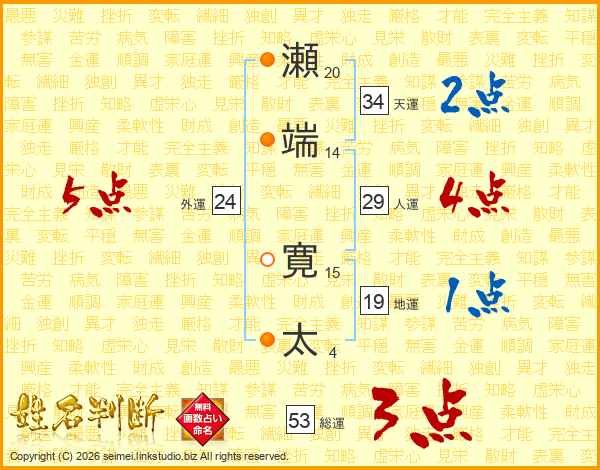 瀬端寛太さんの天運は34画の2点!