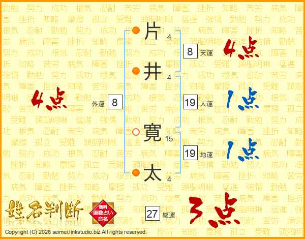 片(4画)井(4画) 寛(15画)太(4画)