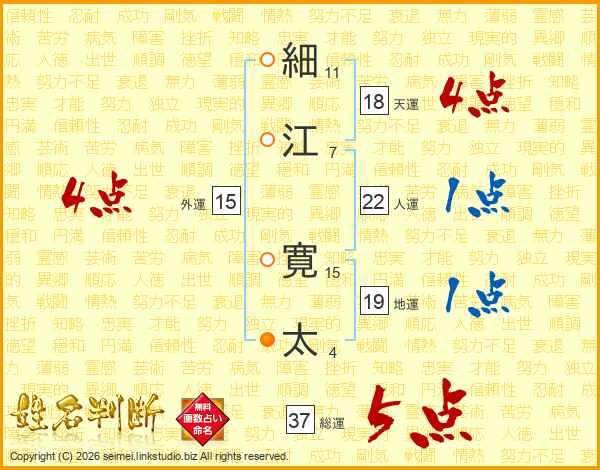 細(11画)江(7画) 寛(15画)太(4画)