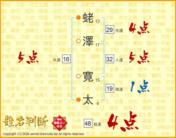 蛯澤寛太さんの天運は29画の4点!