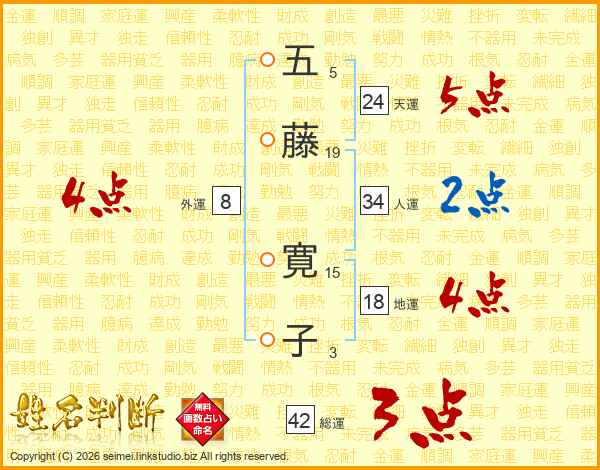 五藤寛子さんの総運は42画の3点!
