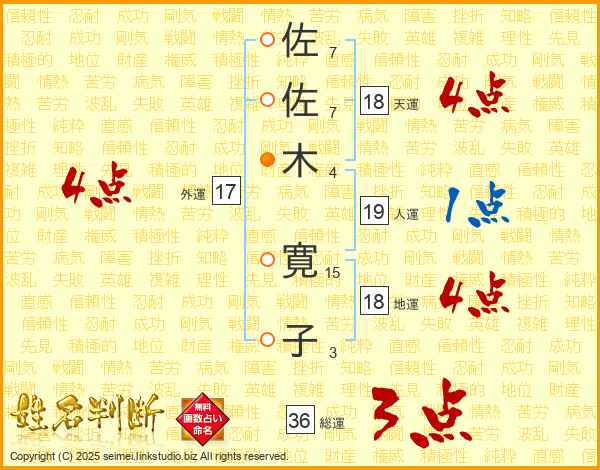 佐(7画)佐(7画)木(4画) 寛(15画)子(3画)