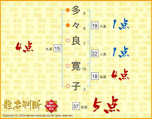 多々良寛子さんの総運は37画の5点!