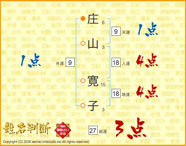 庄(6画)山(3画) 寛(15画)子(3画)