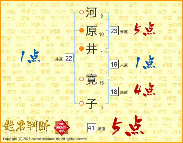 河原井寛子さんの総運は41画の5点!