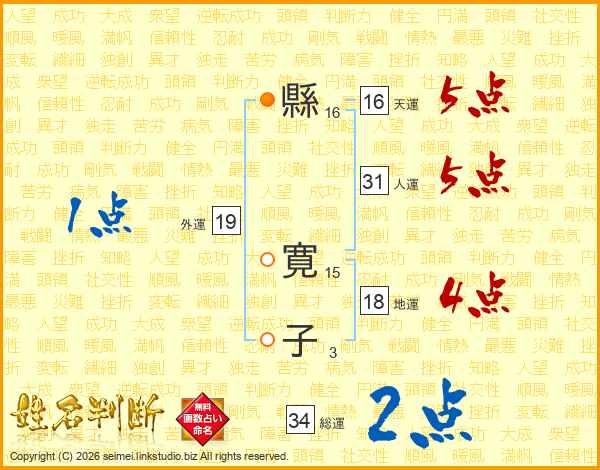 縣寛子さんの天運は16画の5点!