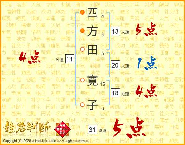 四方田寛子さんの総運は31画の5点!