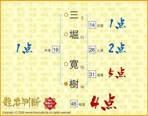 三堀寛樹さんの総運は45画の4点!