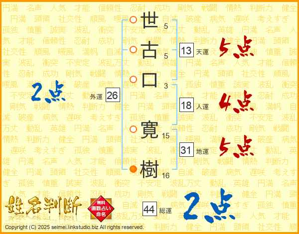 世古口寛樹さんの総運は44画の2点!