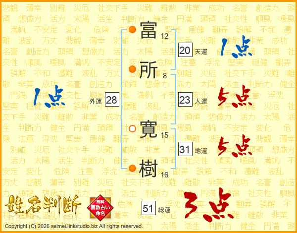 富(12画)所(8画) 寛(15画)樹(16画)