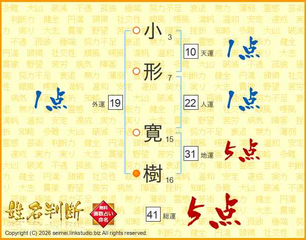 小形寛樹さんの総運は41画の5点!