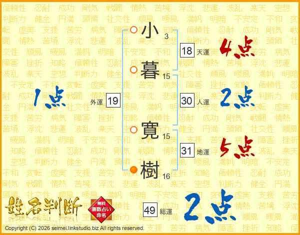 小暮寛樹さんの総運は49画の2点!