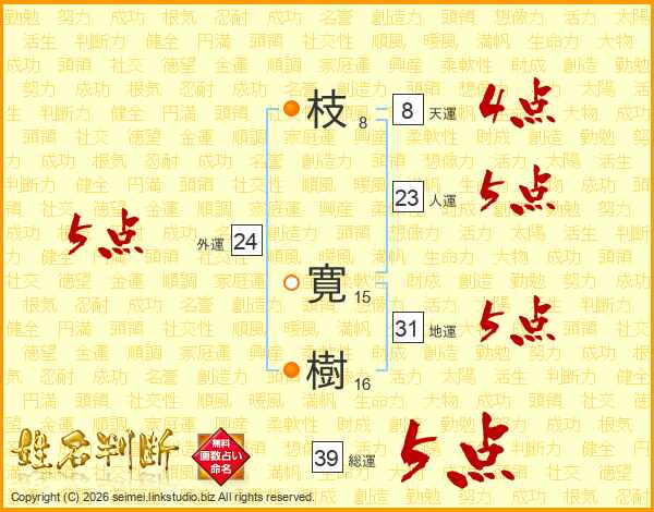 枝寛樹さんの総運は39画の5点!