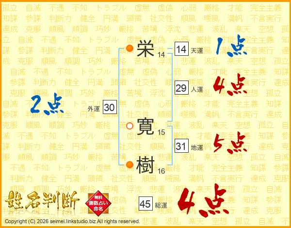 栄寛樹さんの総運は45画の4点!